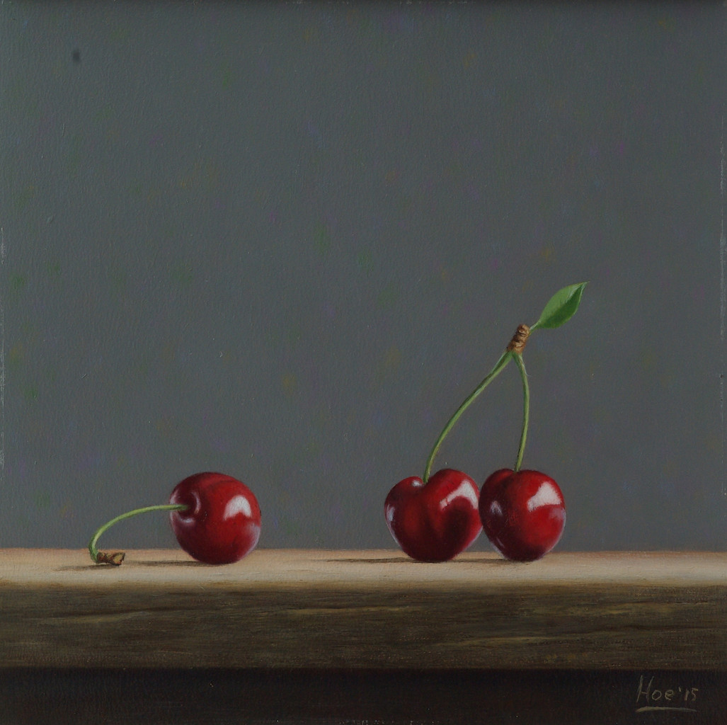 In dit stilleven vormen de rode kersen een solistisch geheel.
