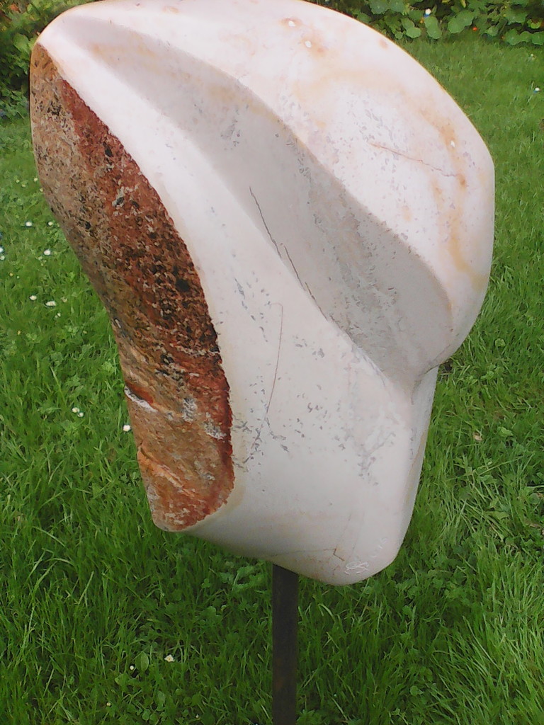 THEA SABELIS (1945)geboren te'sGravenhage .Mijn beelden zijn abstract ,de harde steen die ik bewerk tot een aaibaar lap stof.