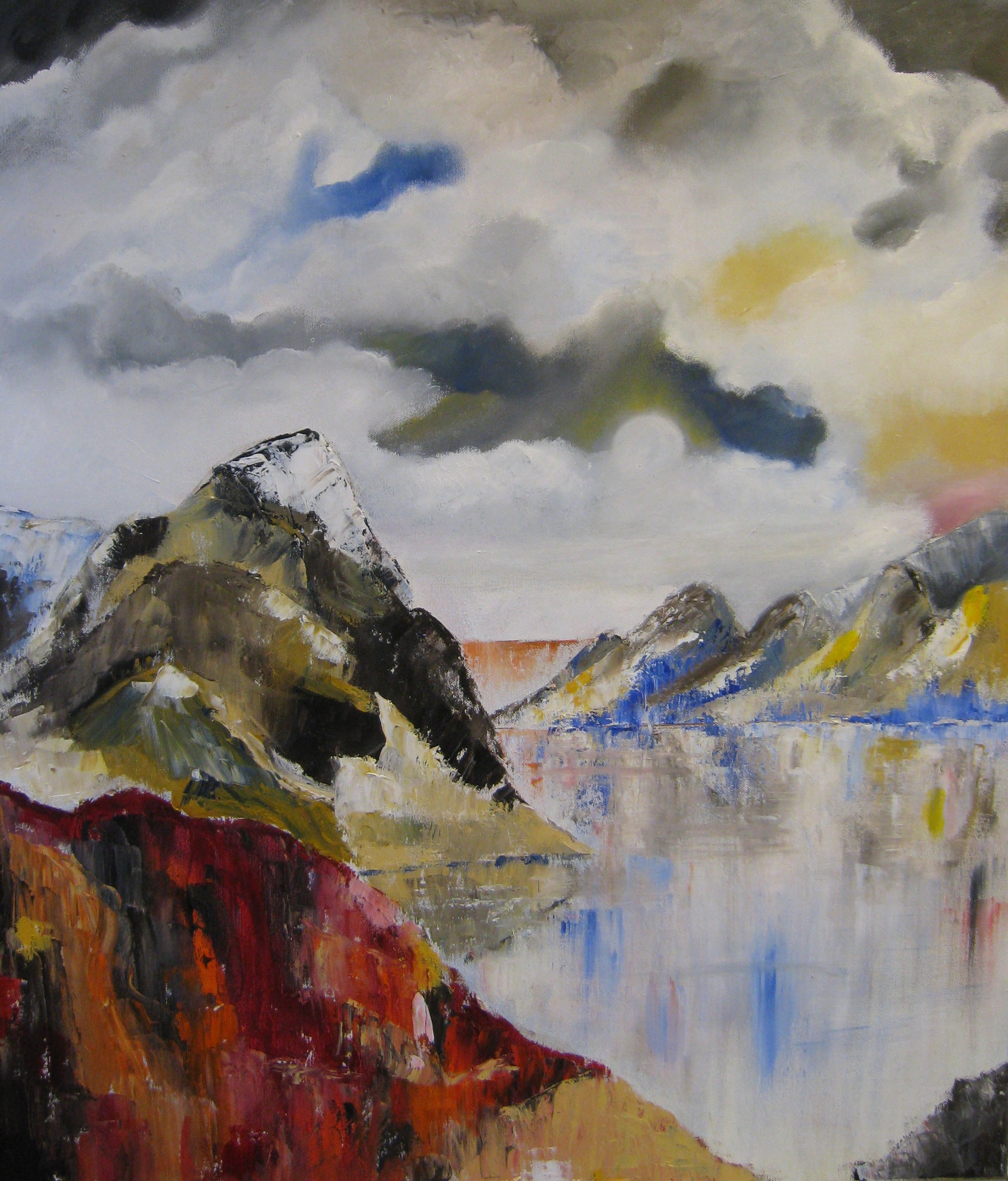 Zee Kwast Wolken Olie Bergen Fjorden Mestechniek