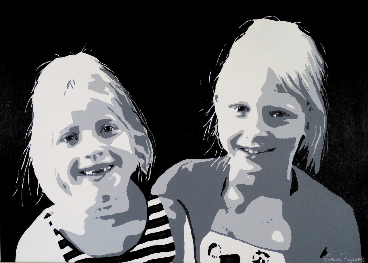 Portret 2 vrolijke zusjes 50/70