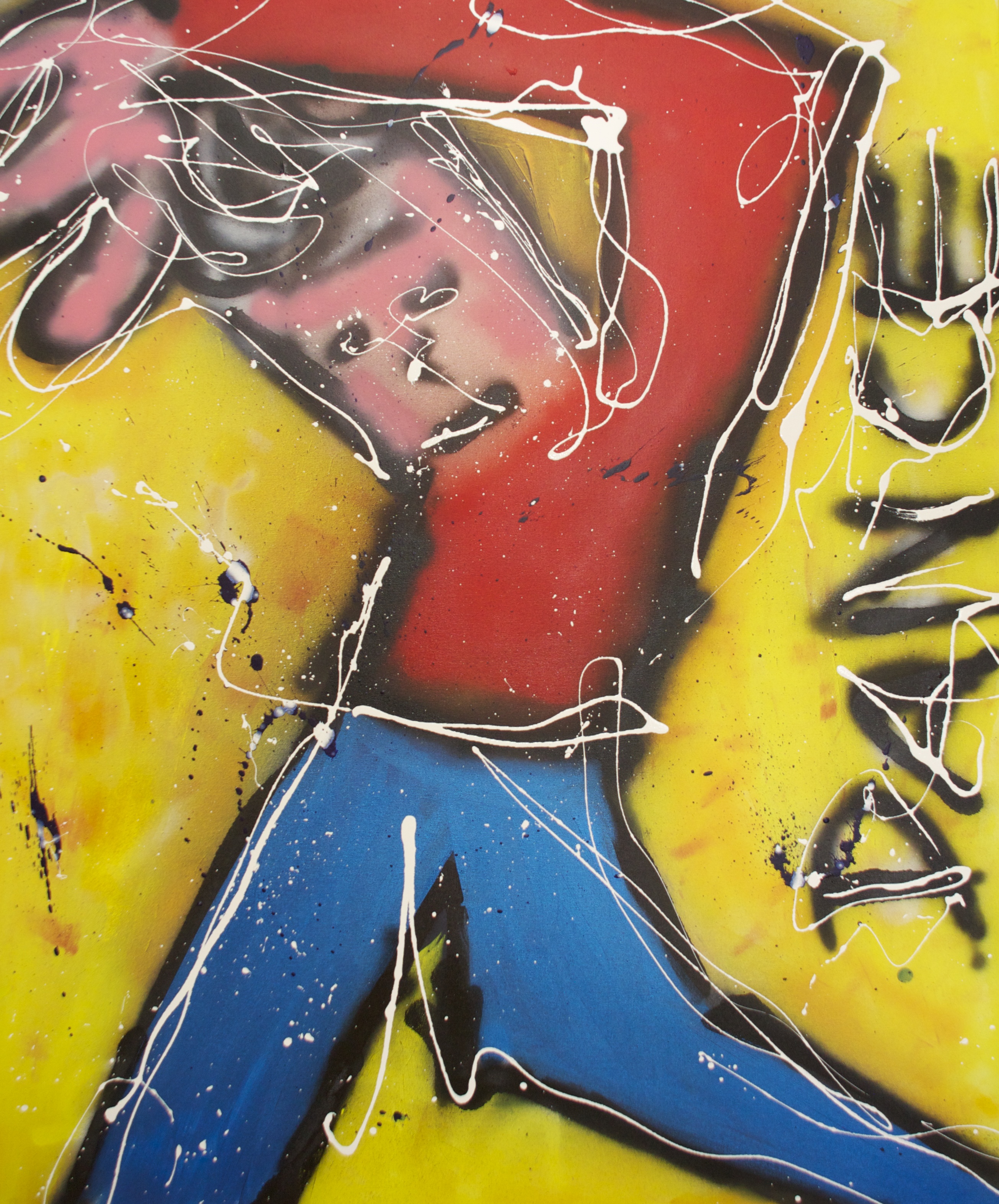 Moderne kunst in Neo-popart stijl geïnspireerd door Herman Brood en Corneille (CoBrA). Met spuitbussen, rollers en mallen van vliegenmeppers tot kanten strings breng ik emotie op het doek. 'Do you dare to feel'