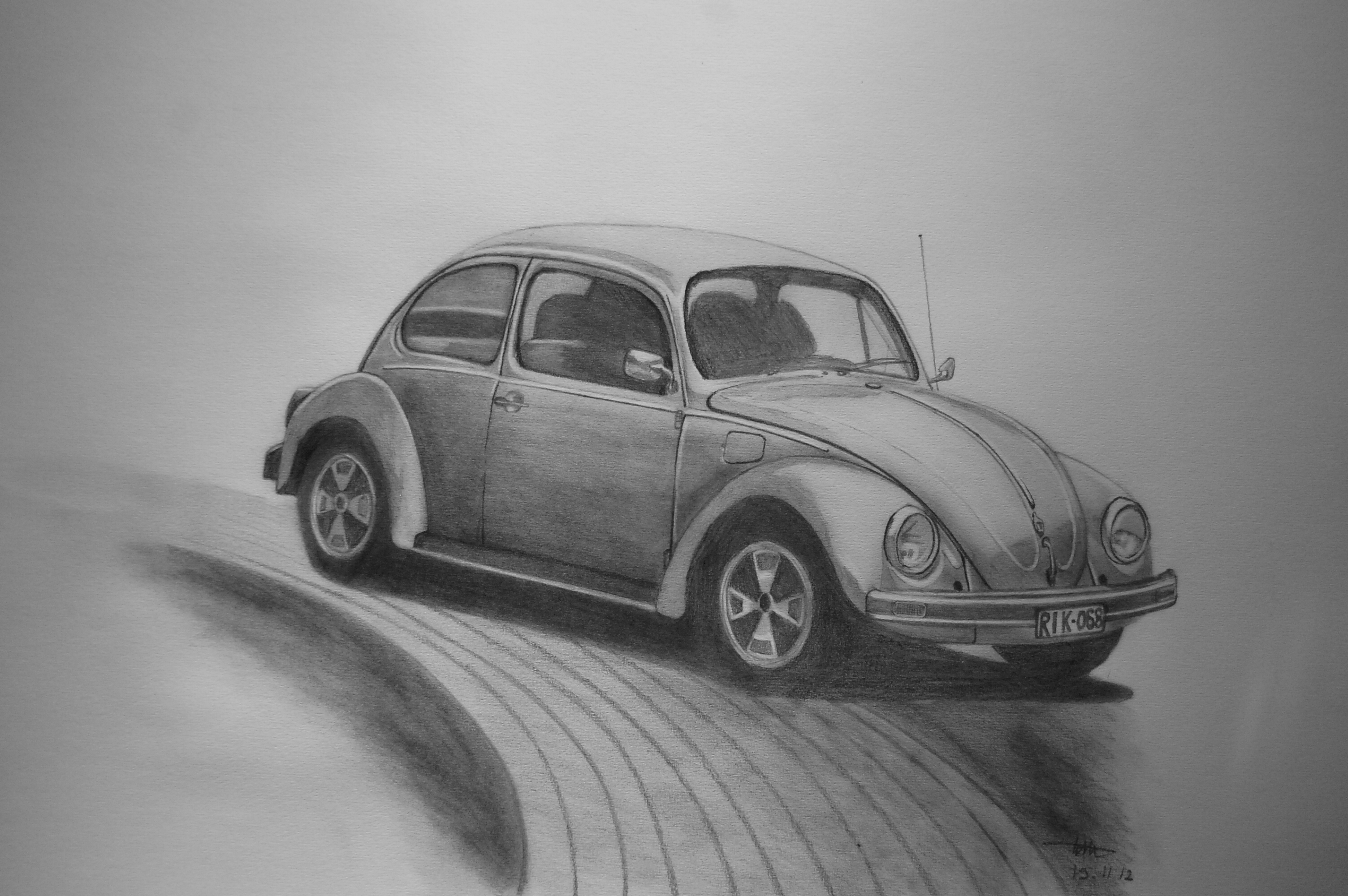 Volkswagen Kever Beatle Potlood Tekeninh Pencil Drawing Greyscale Grijswaarden