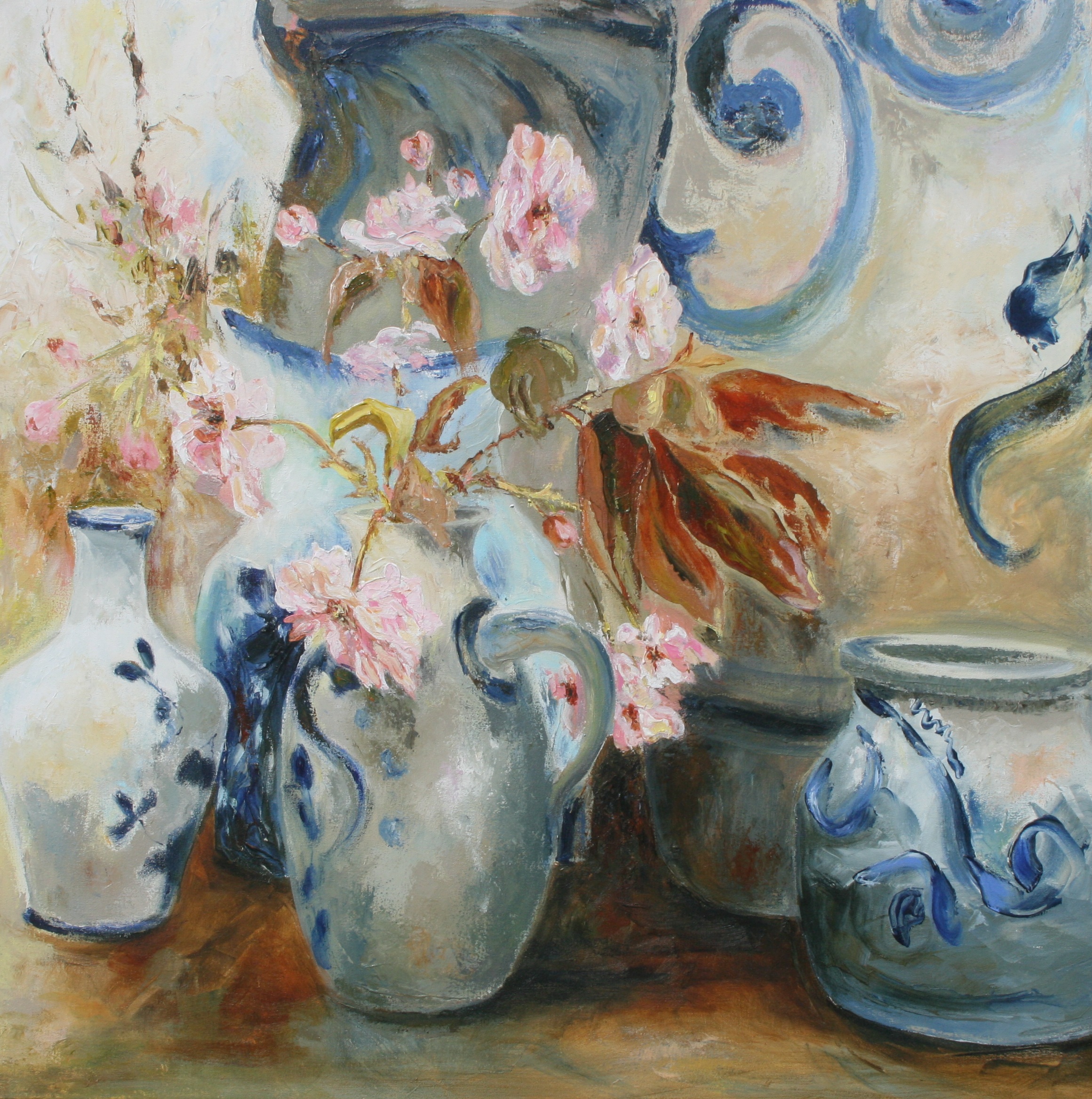 Stilleven met Keulse potten en Bloesem van Prunus