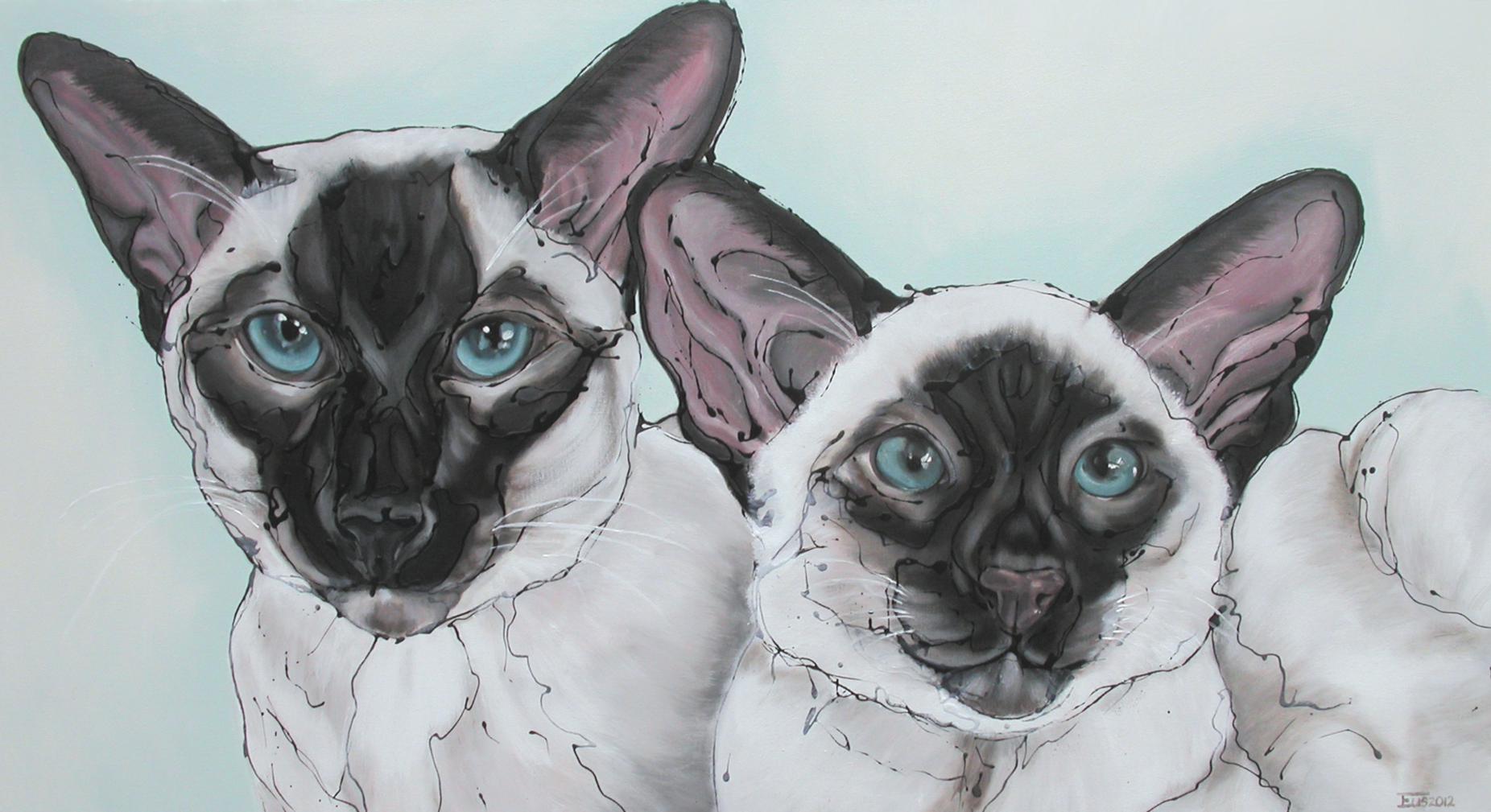 Dieren Art Kat Kunst Painting Two Katten Cat Cats Animal Erlinde Ufkes Stephanus Siamese Siamezen