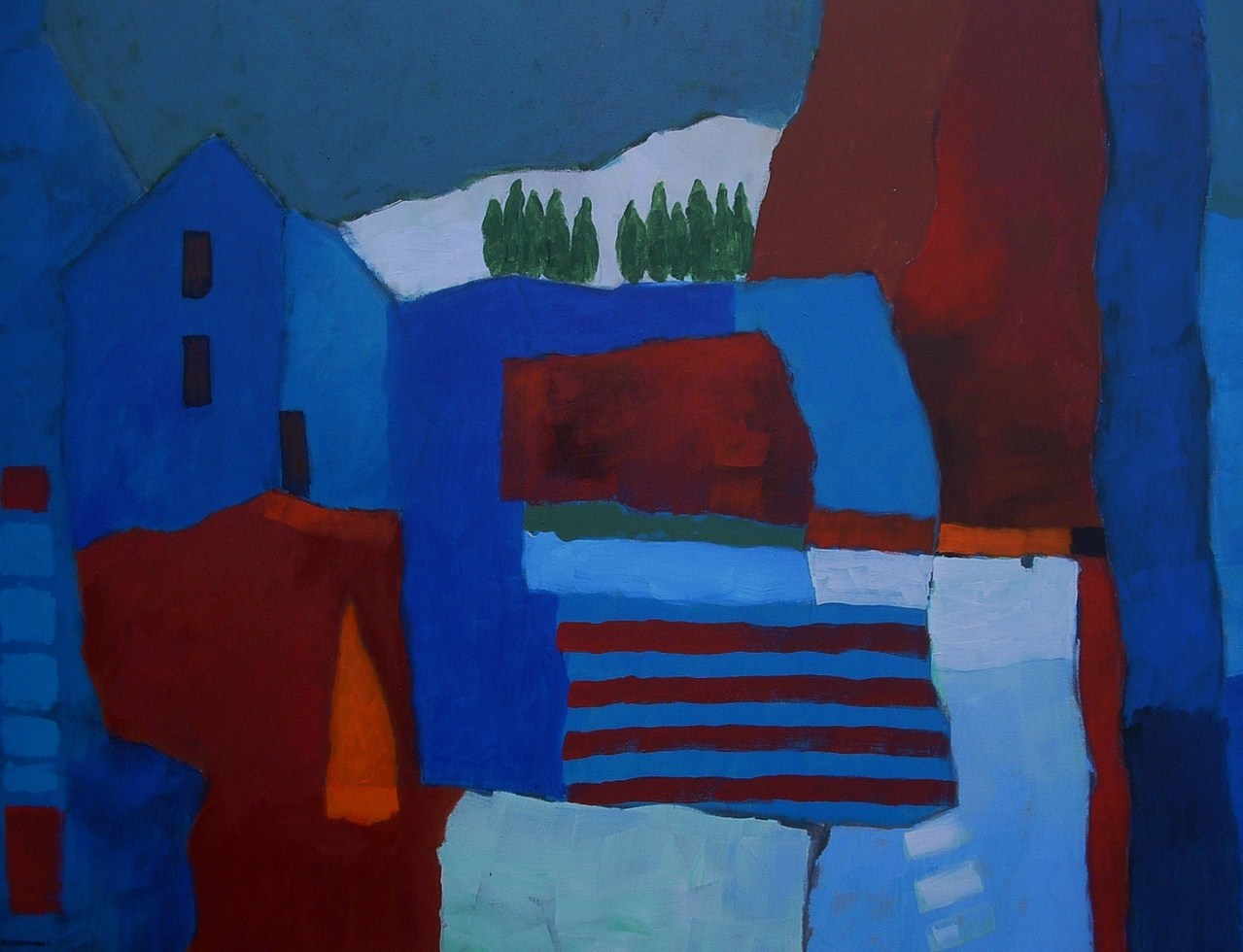 Landschappen en dorpsgezichten zijn mijn belangrijkste onderwerpen.Ik gebruik heldere,warme kleuren en herleid het onderwerp vaak tot bijna abstracte vormen.Ik werk met acryl op doek,diverse formaten.