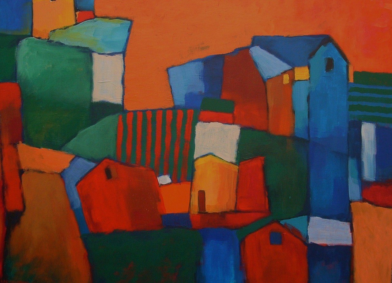 Landschappen en dorpsgezichten zijn mijn belangrijkste onderwerpen.Ik gebruik heldere,warme kleuren en herleid het onderwerp vaak tot bijna abstracte vormen.Ik werk met acryl op doek,diverse formaten.