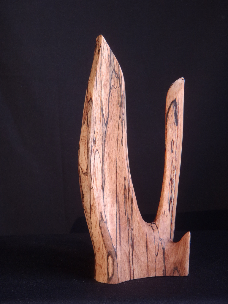 Abstracte sculptuur gemaakt uit beukenhout dat is aangetast door rot en schimmel, en daardoor een mooie tekening heeft gekregen. Afgewerkt met meubelwas.