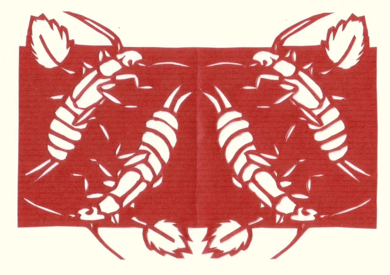 Oorwurm Appel Wijnmaand Knipwerk Rood Papier Paper Cut Scherenschnitt Knipkunst