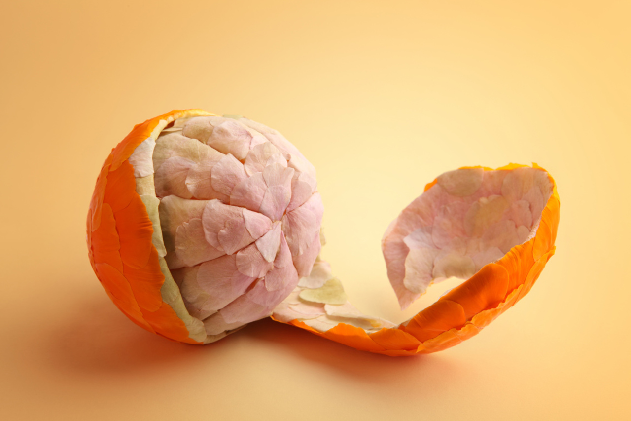 Xiaoling Huang gebruikt verse bloemblaadjes om dagelijkse objecten te verpakken. Zo ontstaat een unieke vorm van stilleven fotografie.