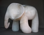 Olifant gemaakt van witte Albast. Dit beeld kan niet in de buitenlucht staan, omdat het dan heel langzaam oplost door de weersinvloeden.