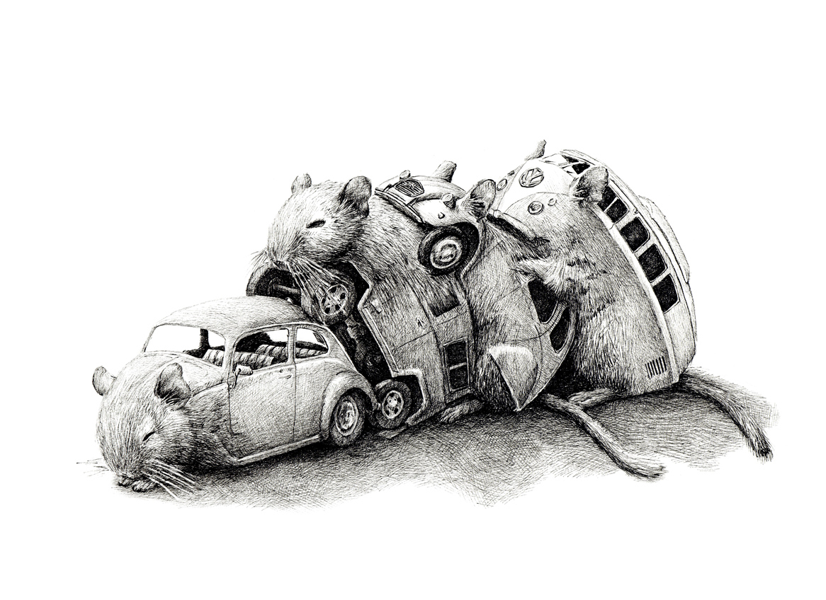 Redmer tekent een surrealistische en fantastische wereld. Ambachtelijk doorwerkte pentekeningen met veel arcering. Het werk is illustratief maar kan ook prima op zichzelf staan. Het bevat humor, een filosofische diepte en immer en altijd vervreemding. De kijker word aan het denken gezet over realiteit en werkelijkheid.