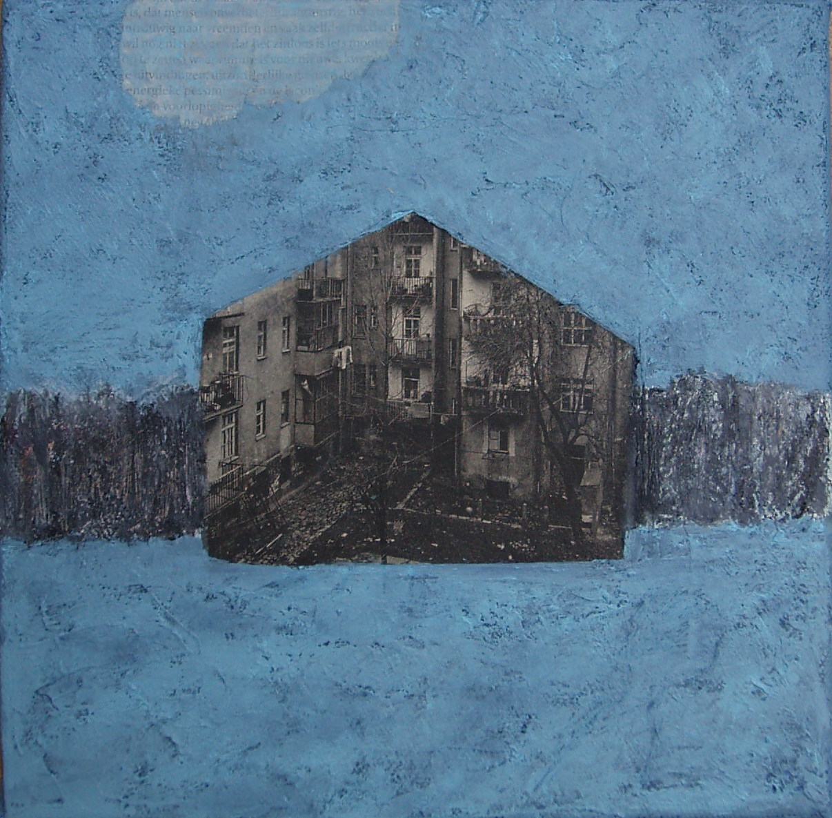 Blauw Collage Huis Stad Wolk Acryl Abstract Berlijn