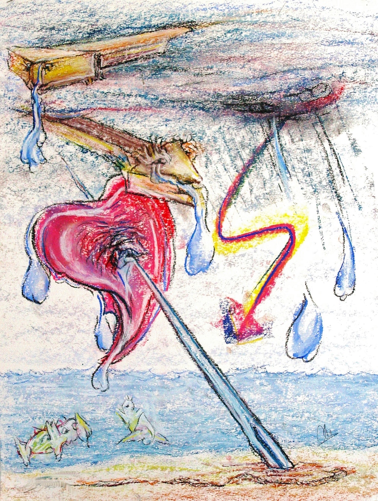 Gelijk Liefdespijlen die door 't lijden tot huilebalk zijn vervallen is het weer door dat hartzeer neerslachtig .. door - regen tot water teneergeslagen. Baruch's vertaling: Boohoo of an arrow: unechoing love, Showering vapours, heartsick by pearcing, weary waters bewail.