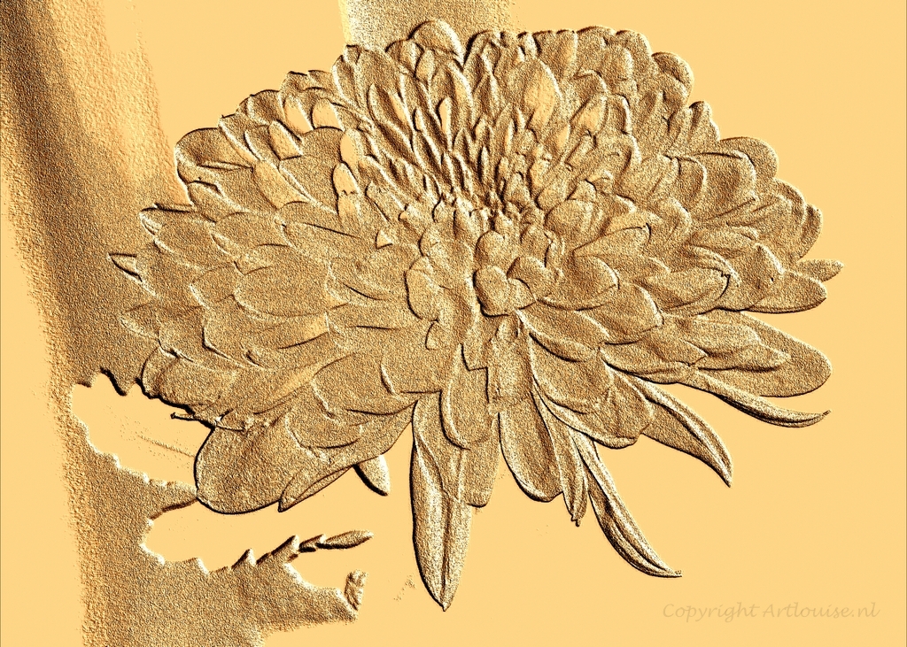 De Chrysant is dermate veelvuldig bewerkt dat het lijkt alsof het een ets is. De afbeelding kan in elk gewenst formaat/materiaal geleverd worden.