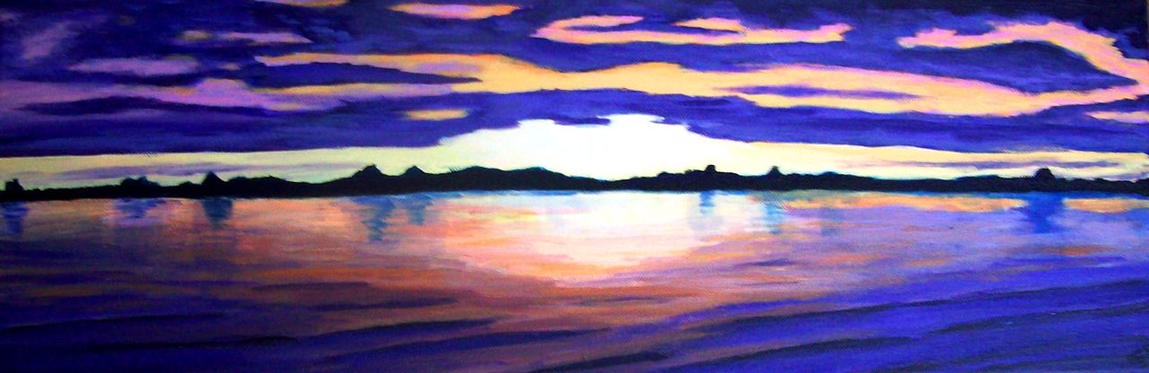 Geel Zwart Blauw Paars Zonsondergang Water Meer