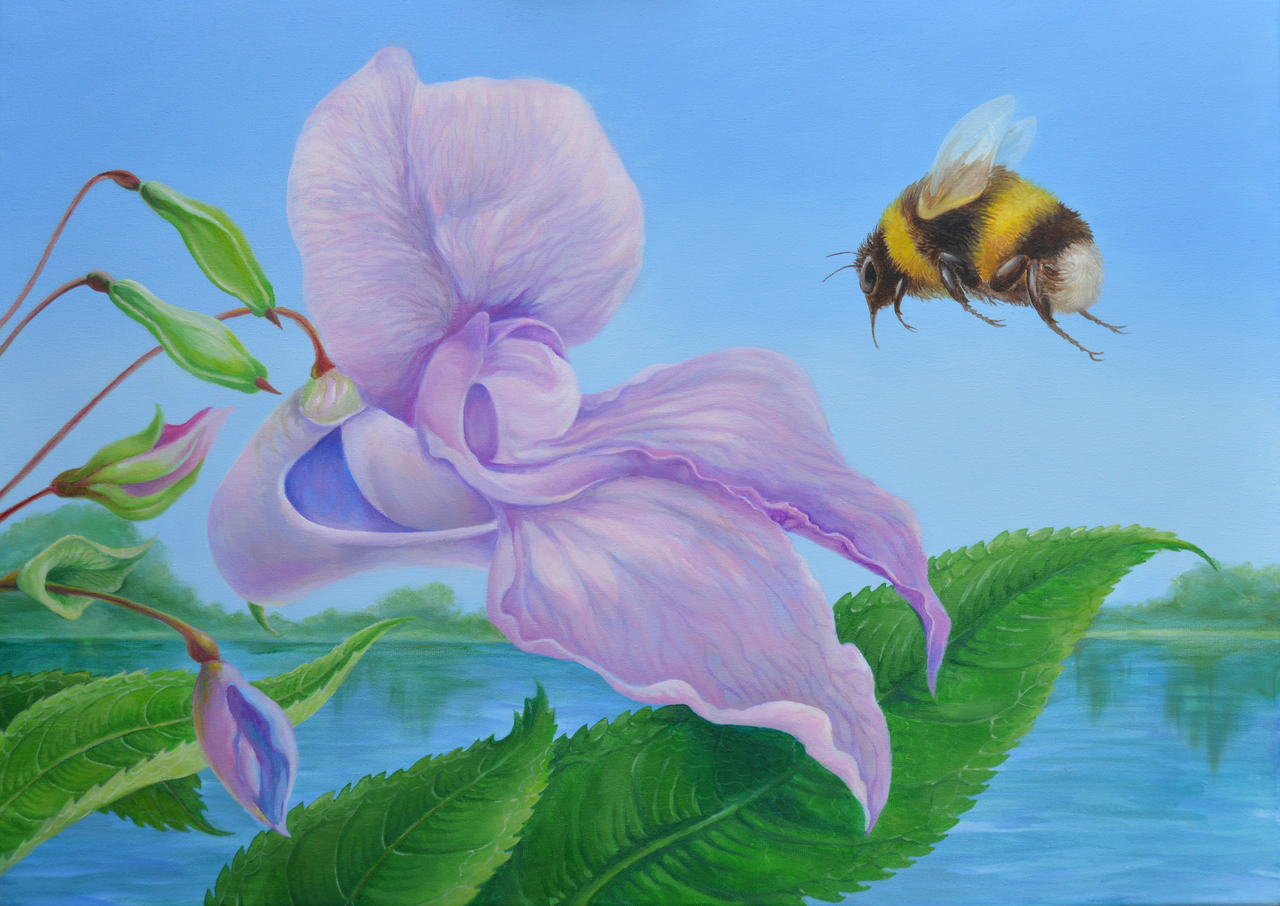Hommels, vlinders, portretten, uitbundig bloeiende bloemen en levenslust zijn bij mij terugkerende thema’s. Soms overheerst de sereniteit, terwijl andere werken een dynamische indruk achterlaten. De boodschap die ik tracht uit te dragen is: vier het leven! De bloemen en insecten zijn rijkelijk aanwezig in mijn eigen tuin en directe omgeving. Zo zijn er meertjes, graslanden en zelfs een klein bos dichtbij. Al deze schoonheid vraagt om aandacht en verdiend het om geschilderd te worden.
