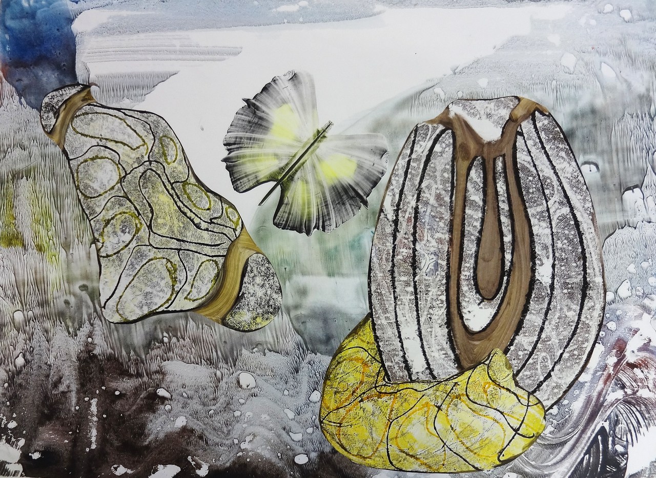 Ik werk impulsief,gedreven en intuïtief.De natuur is mijn grootste inspiratiebron.De landschappen in mijn etsen en monotypes stralen een bepaalde sfeer uit:romantisch,dreigend, verlaten en spannend.Het onderwerp kan beïnvloed worden door iets inspirerends wat op mijn pad komt.Naar aanleiding van een bezoek aan de voorraadkelders van de oude medische instrumentenwinkel van A. van der Kuip te Utrecht,heb ik met dit medisch materiaal zowel ruimtelijk werk,dozen en glazen boxen,als vlak werk gemaakt waaronder monotypes,clichedrukken,collages en tekeningen.