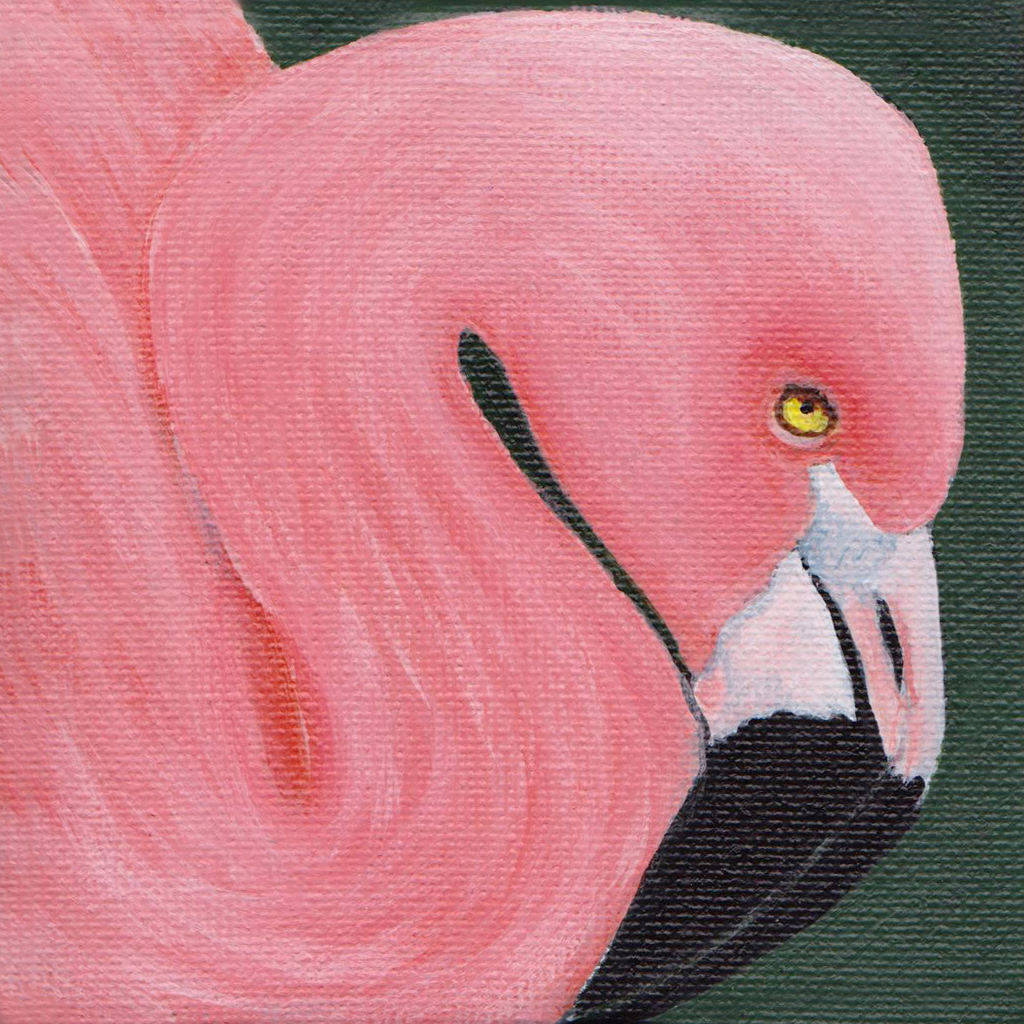 Acryl Rose Vogel Wildlife Dier Painting Acrylic Bird Schilderijtje Pink Animal Flamingo Miniatuur