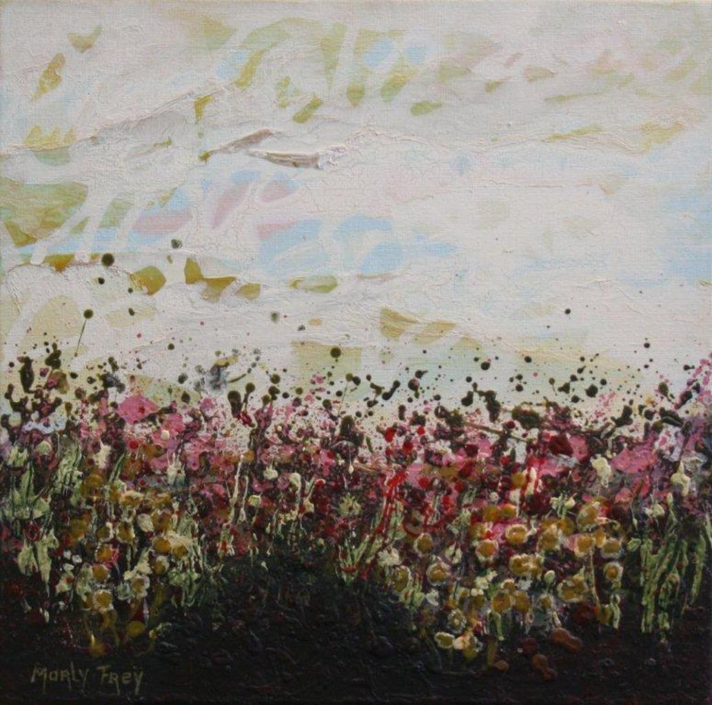 Marly Freij maakt grote kleurrijke, maar ook meer ingetogen schilderijen in gemengde techniek, met name sferische landschappen en abstracte composities