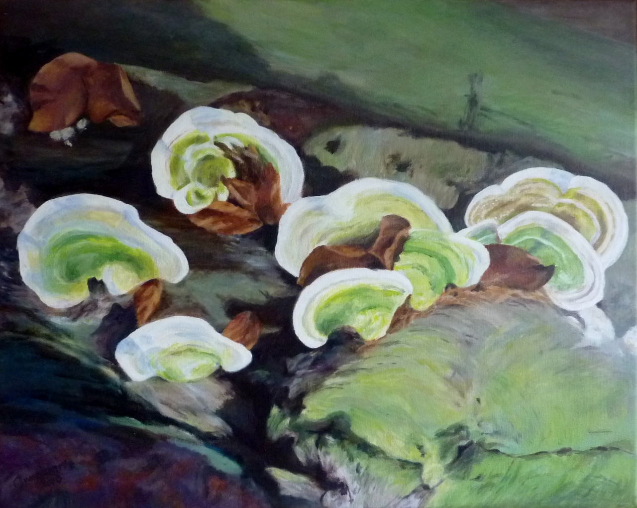 Wit Groen Bruin Bladeren Herfst Boomstronk Paddenstoelen Elfenbankjes