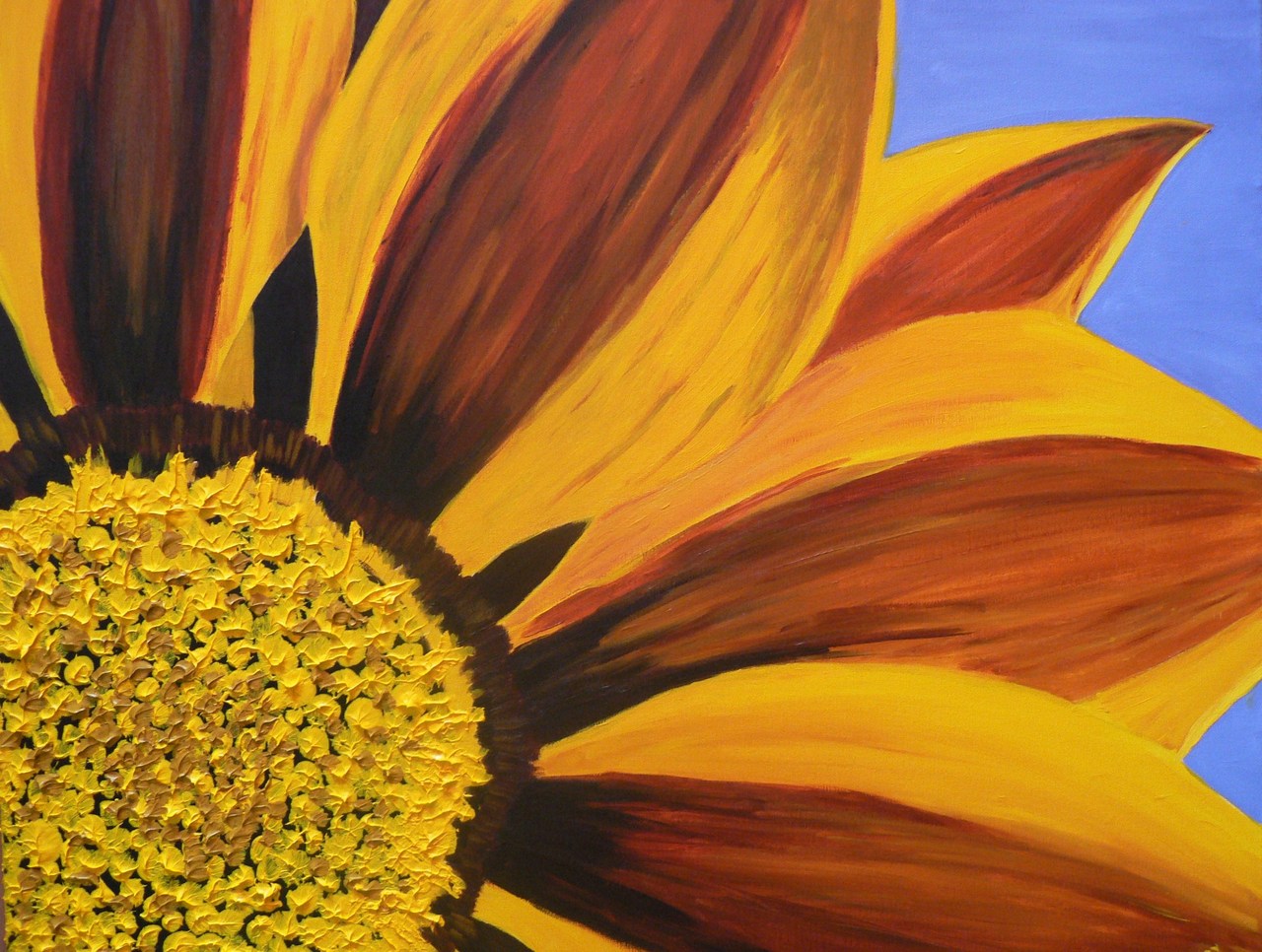 Mijn schilderijen zijn heel gevarieerd. Ik ga vaak op onderzoek uit naar verrassende exposities. Daar gebruik ik verschillende materialen voor en hoop dan een bijzondere structuur te krijgen. De schilderijen zijn vaak abstract en nogal kleurrijk. Verder hoop ik dat iedereen net zo veel plezier heeft met het kijken naar mijn schilderijen als dat ik heb gehad met het maken ervan.