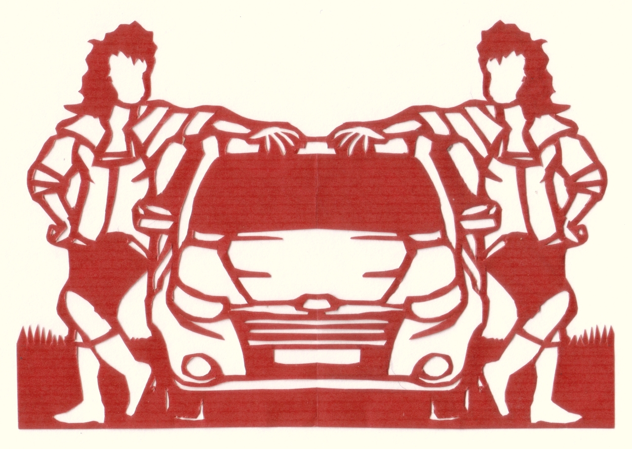 Rood Vrouw Papier Auto Paper Cut Knipkunst Knipwerk Scherenschnitt Bolide