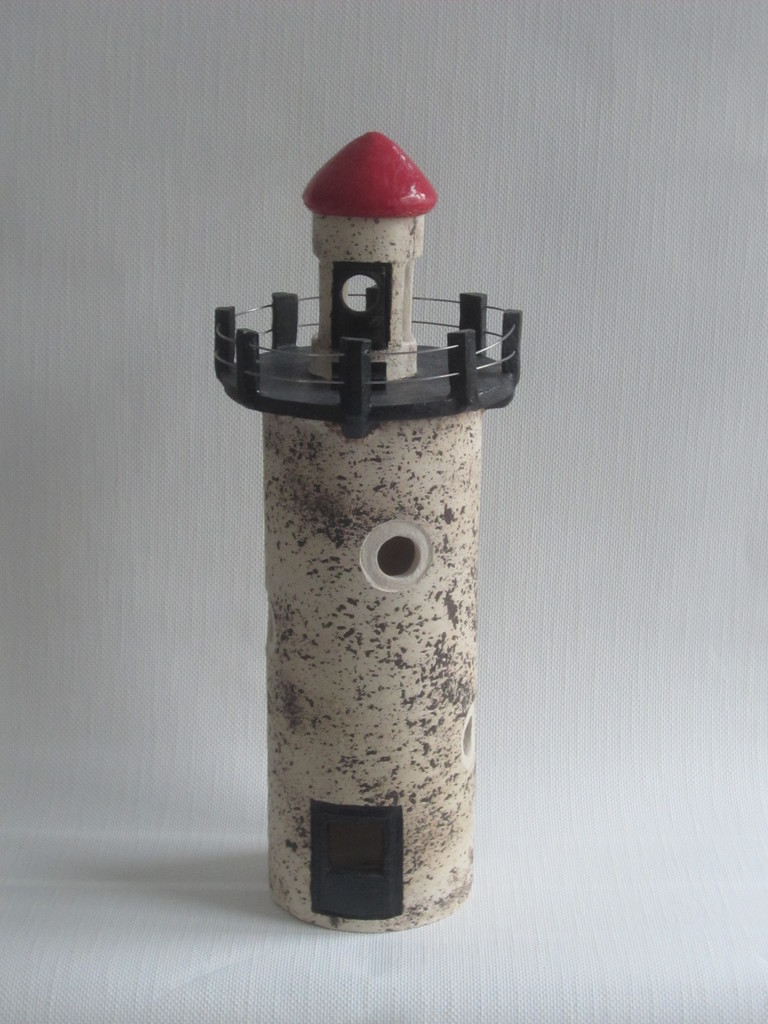 Vuurtoren van witte klei met een sinter-engobe de top met een glansglazuur