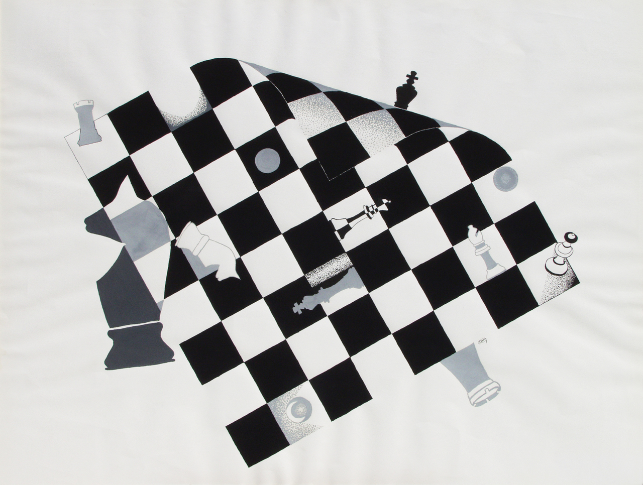 Wit Surreel Zwart Papier Gouache Black White Paper Schaken Chess Schaakstukken Chesspieces