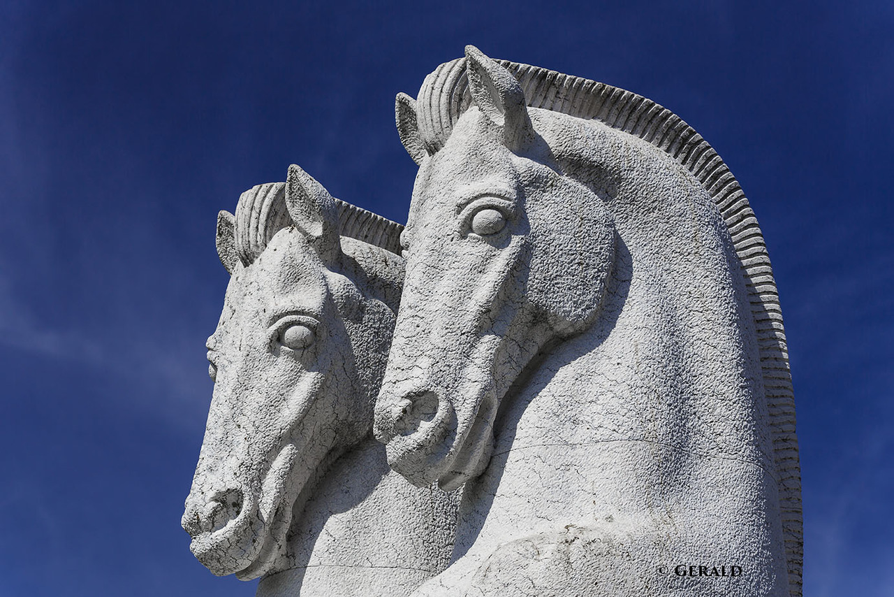 Blue White Head Standbeeld Horse Statue Color Lissabon Paardenhoofden Portgugal