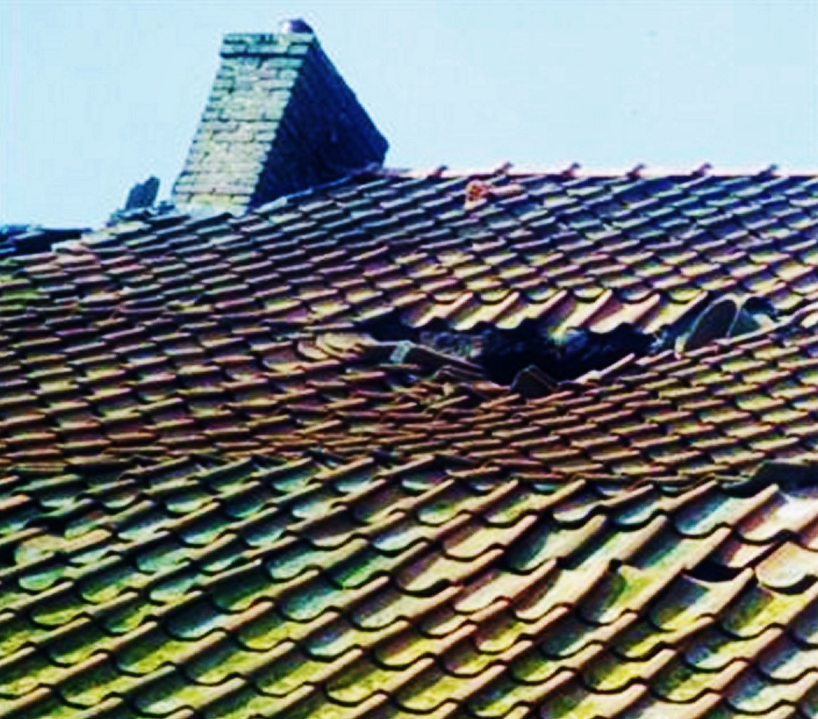 Zo zuchtend onder haar laatste ademtochten heeft 't dak haar stikken toch nog even af kunnen blazen. Baruch's vertaling: Moaning and breathless the roof and each tile strangle their burking for only a while.