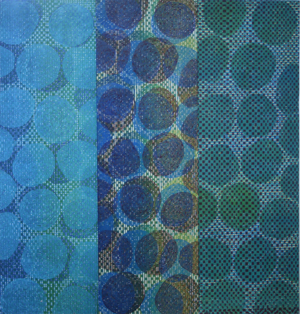 Tweede drieluik uit driedelige serie linosneden met als thema "ritme". Verlijmd op aluminium.