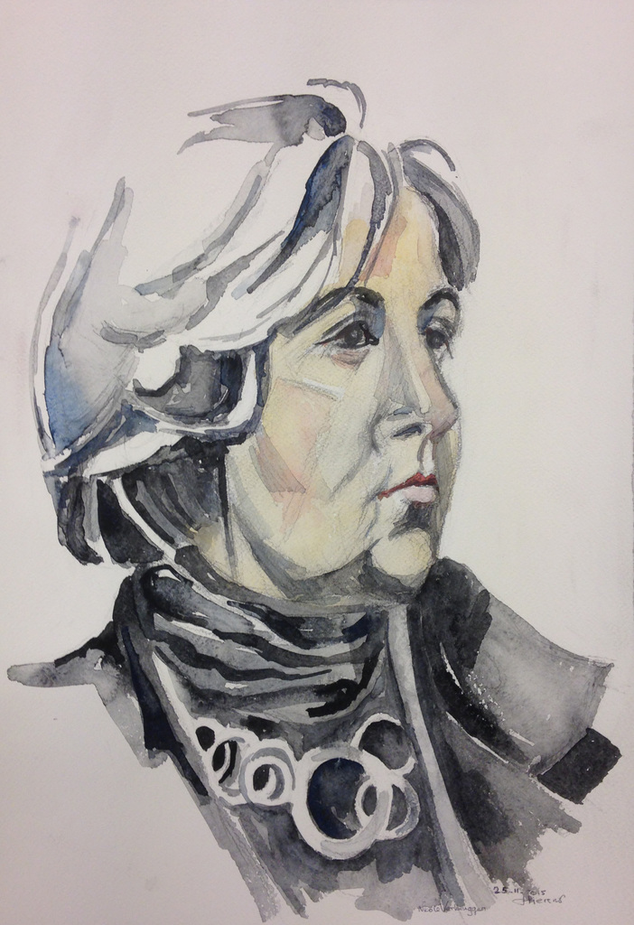 Portret Nicole, in losse aquareltoets. In particulier bezit.