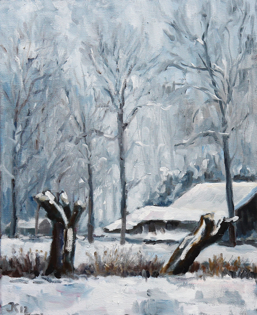 Sneeuw op de Veluwe. Impressionistische uitwerking. Bonenkampsweg, Gietelo