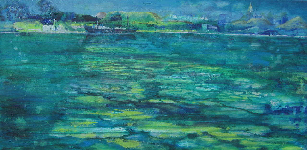 Geel Blauw Acryl Yellow Groen Kleurig Water Green Uitzicht Boot Bleu Boat Nijmegen Mariandewit Ooipolder Overlooking