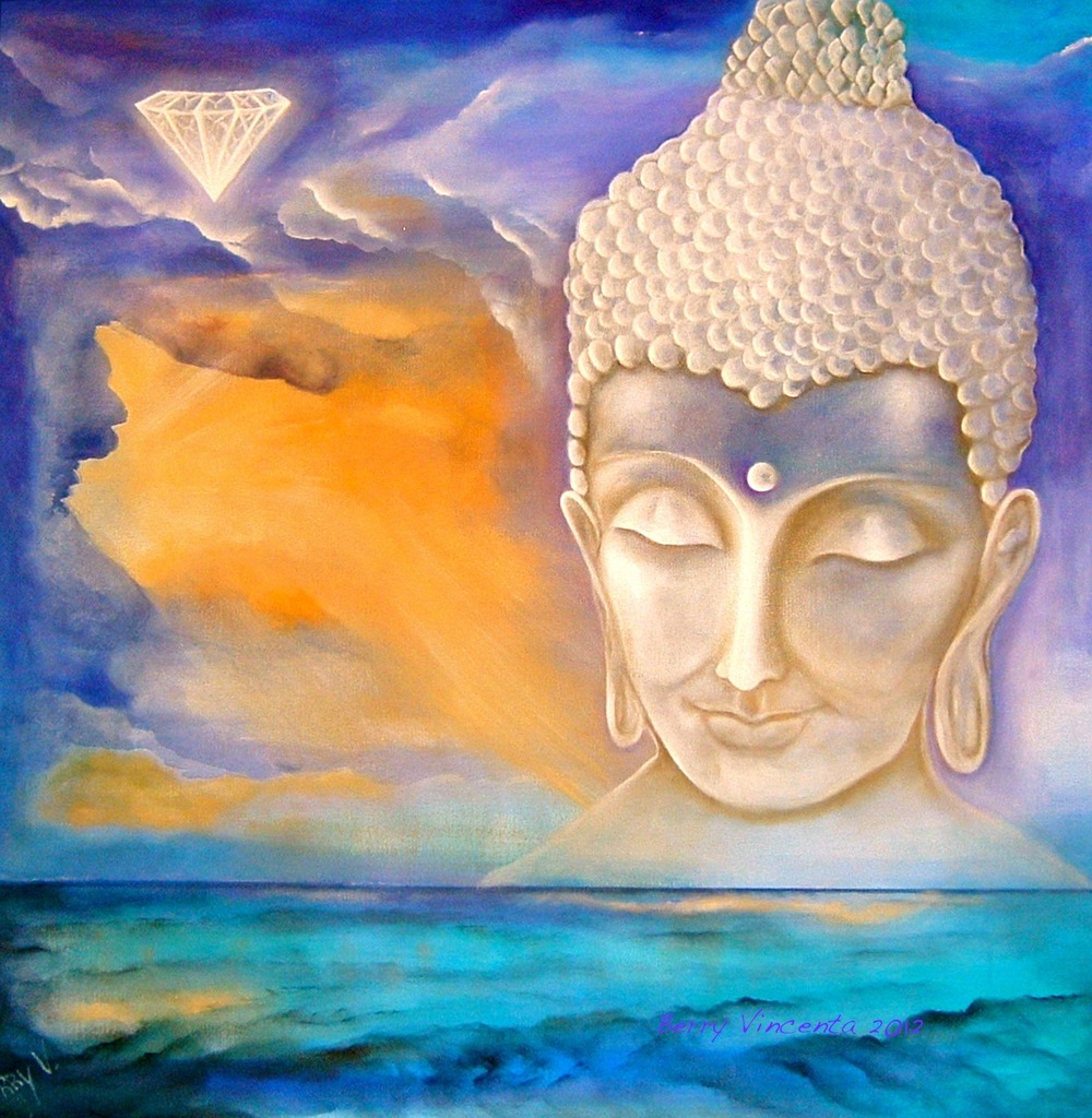 Boeddha Stilte Spiritueel Kosmisch Olieverf Mystiek Symbolisch Zieleschilderij
