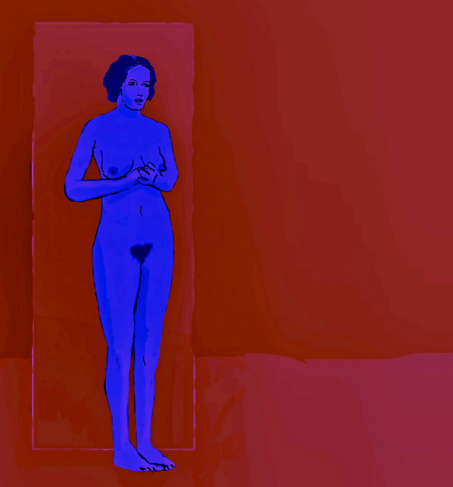 blauwe vrouw in rood