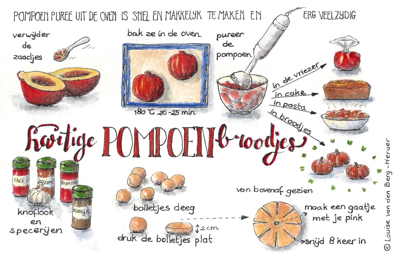 Illustratie Pompoen Illustration Recept Recipe Pompoenbroodjes Foodillustratie Keukenatelier