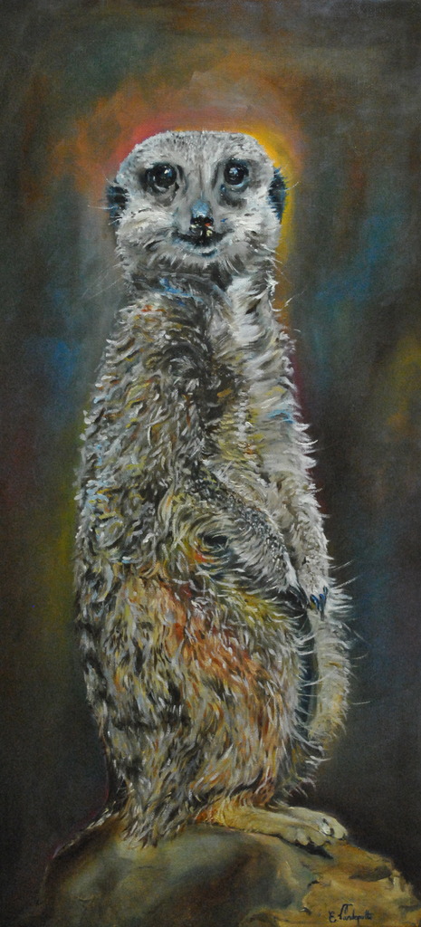 Dier Olieverf Oilpaint Linnen Animal Zoo Linen Meerkat Stokstaart