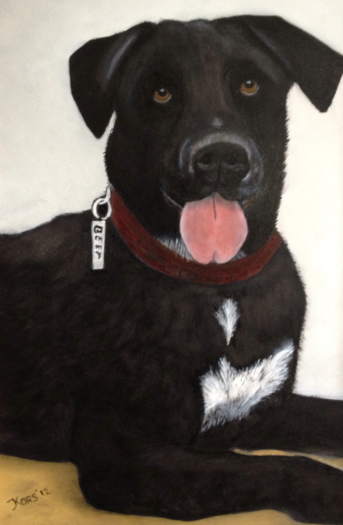 Beer Cuijpers heb ik in opdracht geschilderd. Beer was een kruising Boxer/Labrador. Van een heel oude foto heb ik hem uiteindelijk weten te vereeuwigen. Met als resultaat: twee hele blije baasjes!