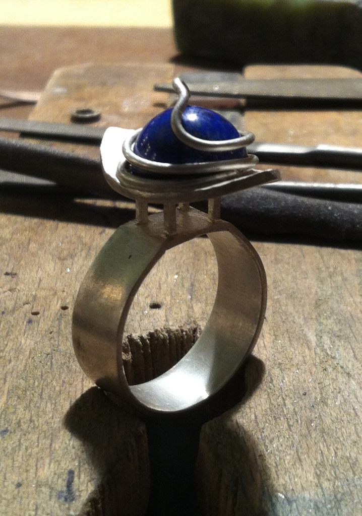Zilveren ring met steen van Lapis Lazulli. Om de draagster er aan te herinneren dat er altijd een weggetje is je dromen waar te maken... As long as you keep your eyes open