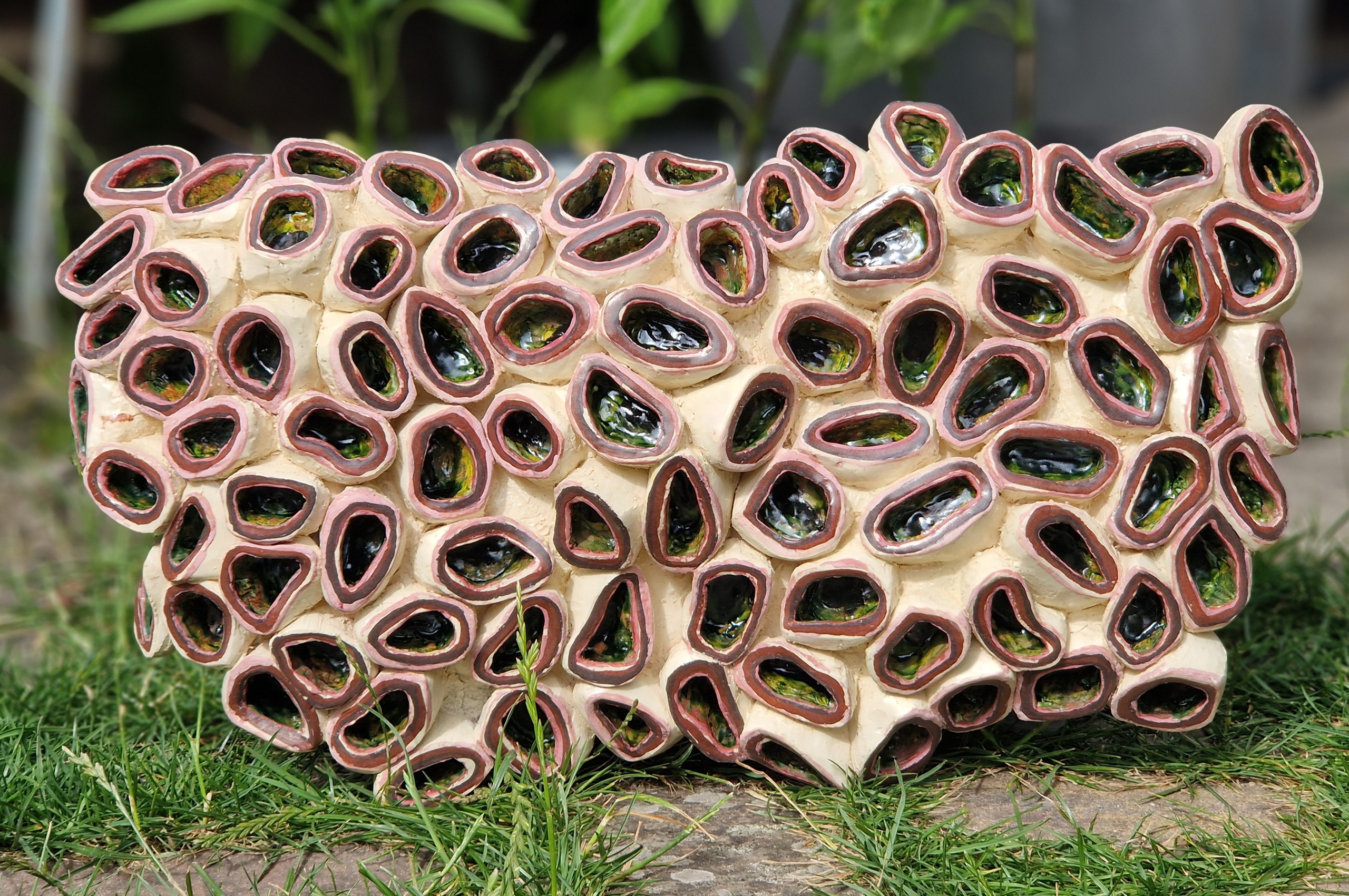 Zee Klei Relief Sculptuur Keramiek Wandobject Koraal Gekleurd Rondjes Wandrelief Meijer Zeeuwsmeisje