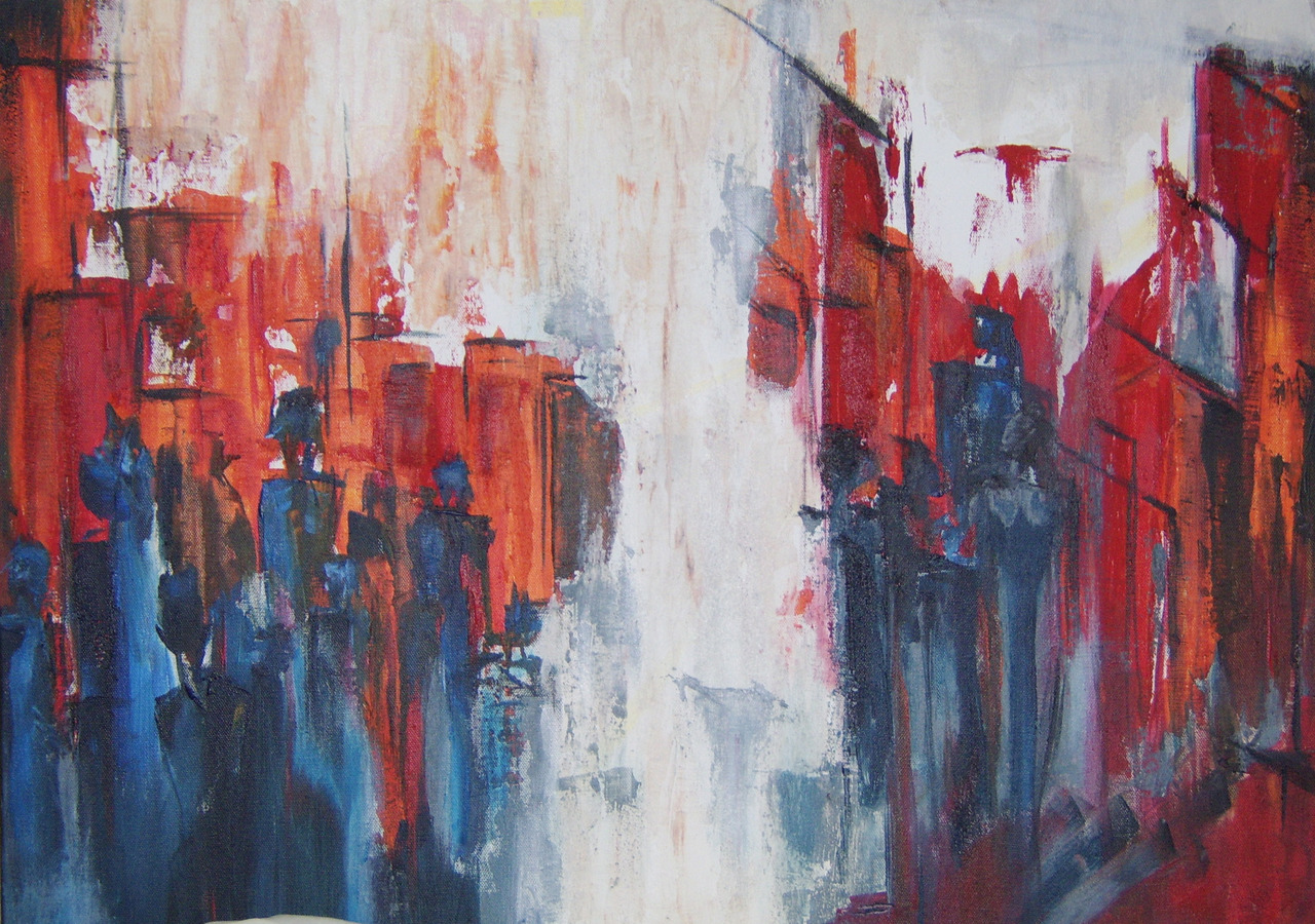 Schilderij Wit Abstract Rood Blauw Van Stad Brand Emilie Willigen