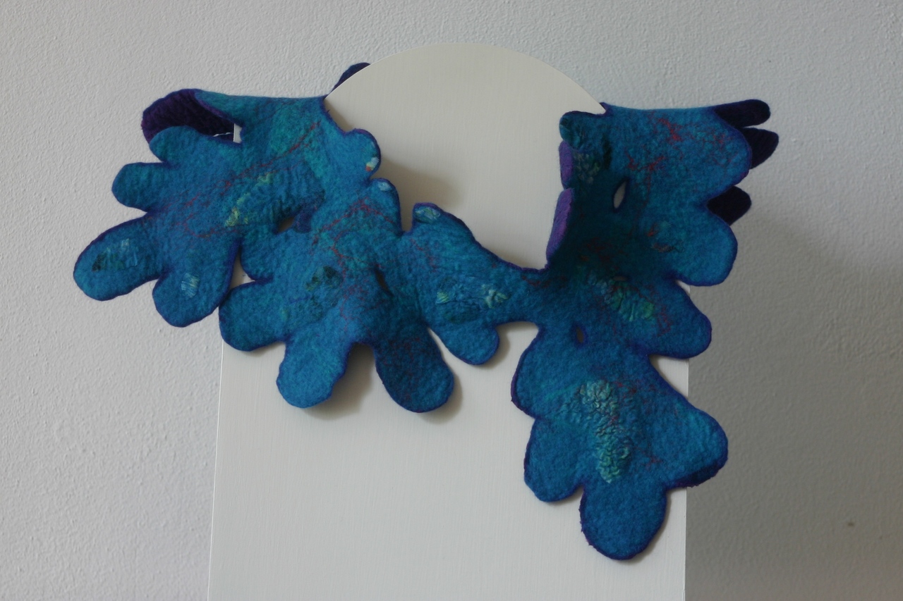 Het materiaal waar ik mee werk is wol dat ik vervilt tot draagbare kunst en viltpanelen. In mijn werk staat het onderzoek en experiment centraal. De natuur is mijn inspiratiebron