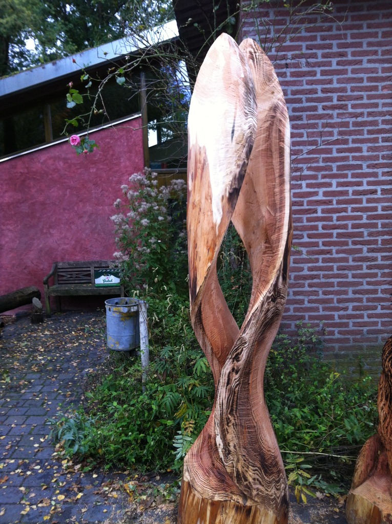 Sculptuur uit Douglass, werk in opdracht.