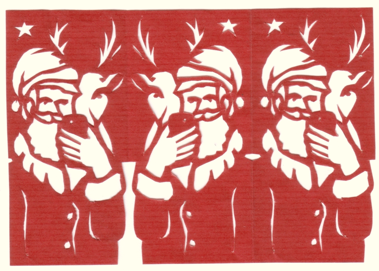 Santa Selfie Knipwerk Knipkunst Papier Rood Paper Cut Scherenschnitt