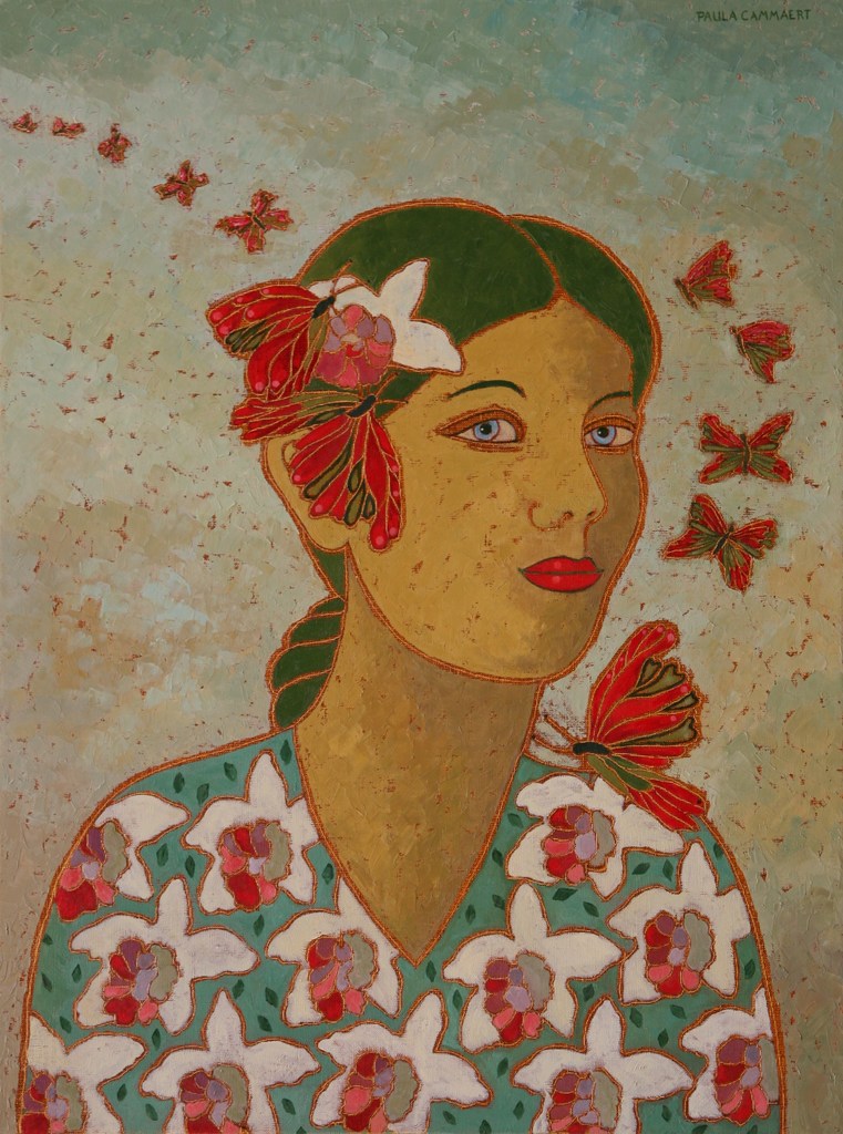 Olieverf Vrouw Vlinder