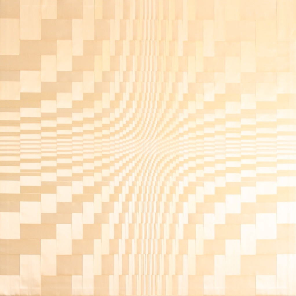 Art Vierkant Op Textiel Zalm Weven Lichtgeel Illusie Vlechten Vlechtwerk Satijnlint