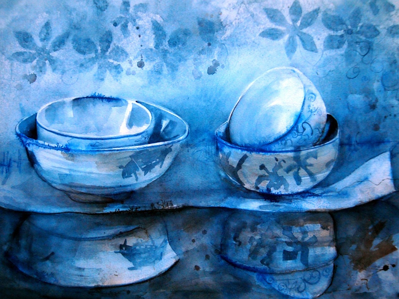 Aquarel Blauw Stilleven