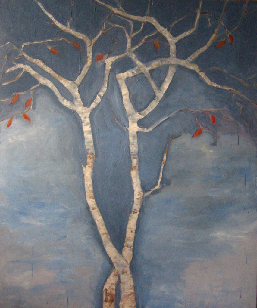 Olieverf Herfst Boom Hemel Groeien Leeftijd
