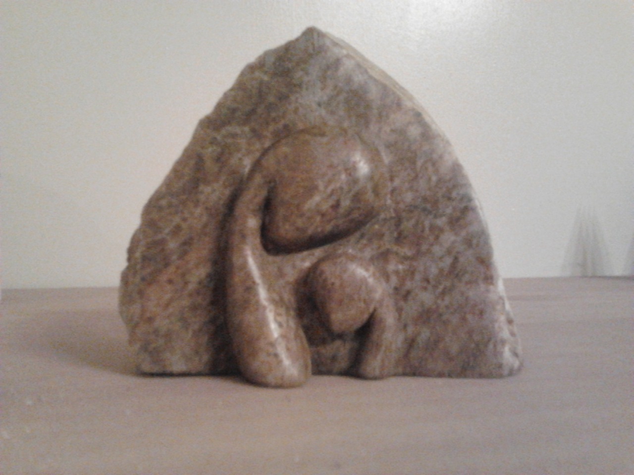 Mijn 3e spejsteenwerk, een beeldje 'zorgzaam', volwassenen beschermt kind.